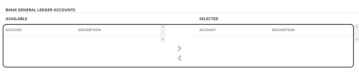 To attach a G.L. account to the physical bank account, highlight the account in the Available column and click the