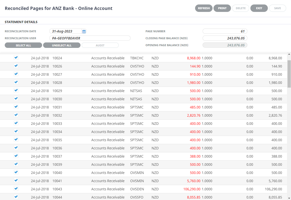 The example above is showing old transactions, which is not uncommon when the Bank Reconciliation is started some months or years after the system has been installed and used - generally as a result of a staggered implementation.