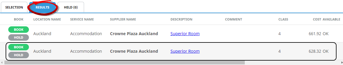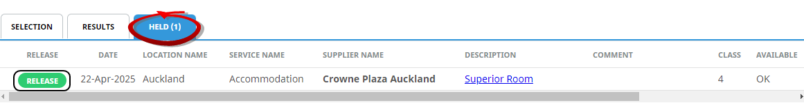 • Clicking Hold will 'tag' and hold the product until it is formally booked. For example, multiple products for a particular location can be tagged as held and then all held products can be booked in one step.