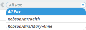 If there are multiple pax a dropdown selection is available to view the itinerary per room, or the arrow can be used.