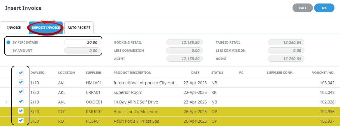 NOTE: It is possible to issue multiple invoices for a booking to different agents/clients by changing the agent code in this field.