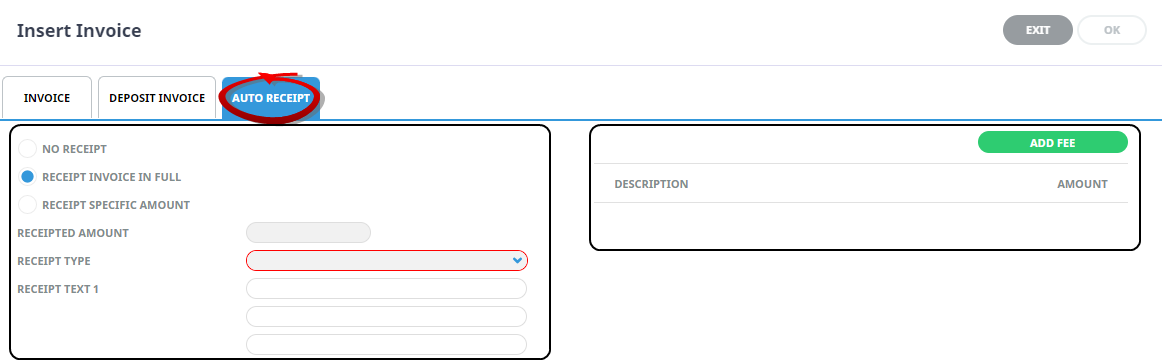 Insert Invoice Screen (Tab 3 - Auto Receipt)