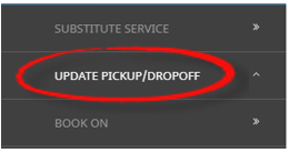 The Update Pick up/Drop off menu option allows users to set filter options to return required results, and amendment to pick up/drop off points or times can be performed to multiple services across multiple bookings.