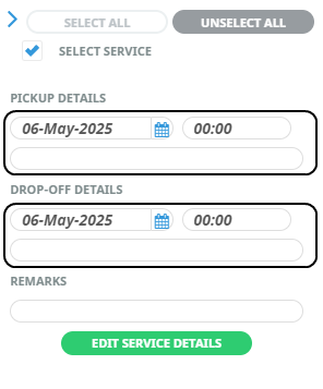 2. Or click Edit Service Details, to enter the Pickup and drop off details.