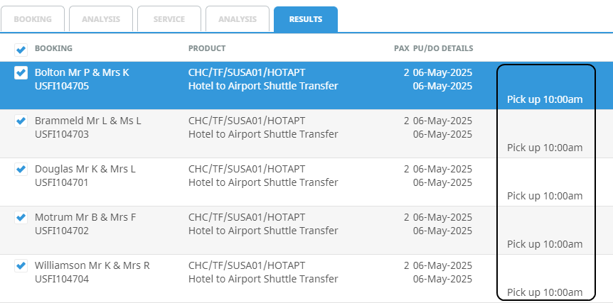 Used to select specific pick up points selected in the booking.