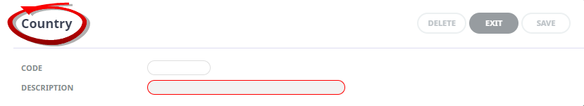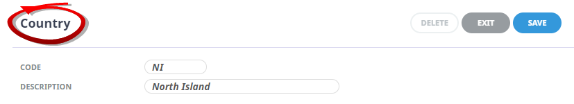 NOTE: After clicking Save, the screen clears, ready for another Country - continue adding Countries or click Exit to close the screen.