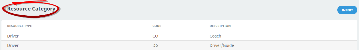 Resource categories allow specific resource capabilities to be attached to individual resource records; codes and descriptions are used to categorise resources.