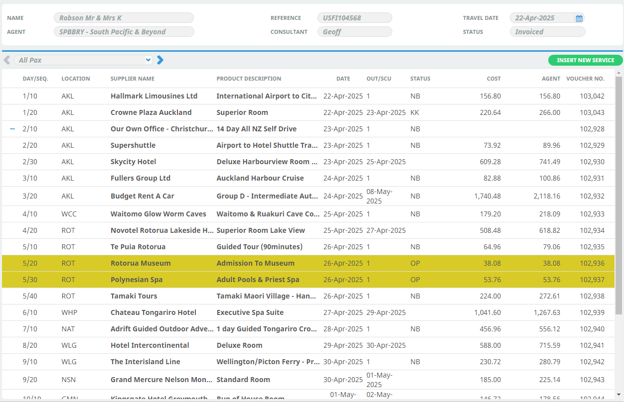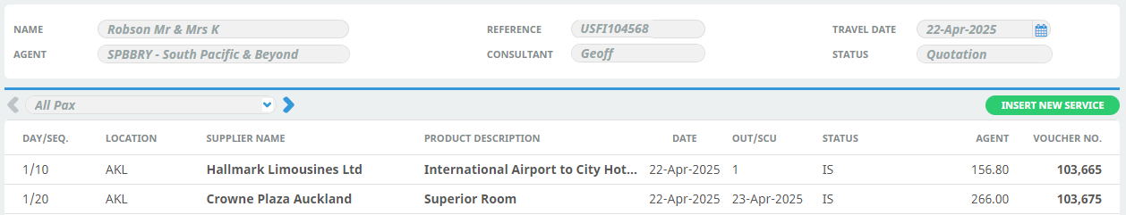 Bookings and Quotes > FITs > Itinerary Insert Service - Results Tab