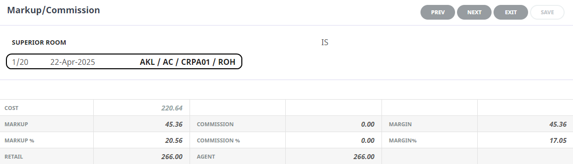 Markup/Commission for Superior Room (line 2 in the example)