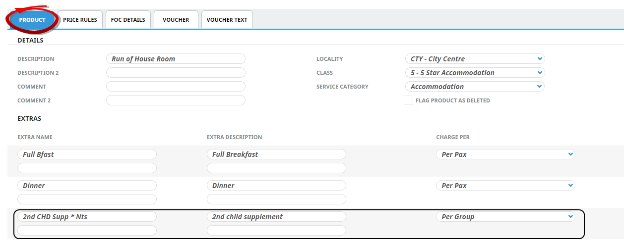 NOTE: Only one child price and one infant price can be stored in a Tourplan product.