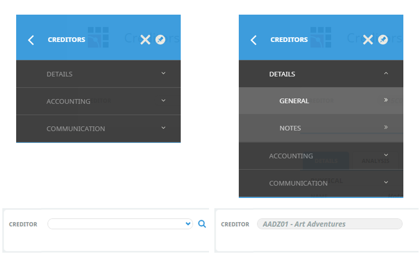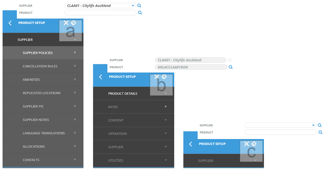 The menu can change when an item, such as a supplier or a product, is chosen in the screen. The following examples illustrate the differences.