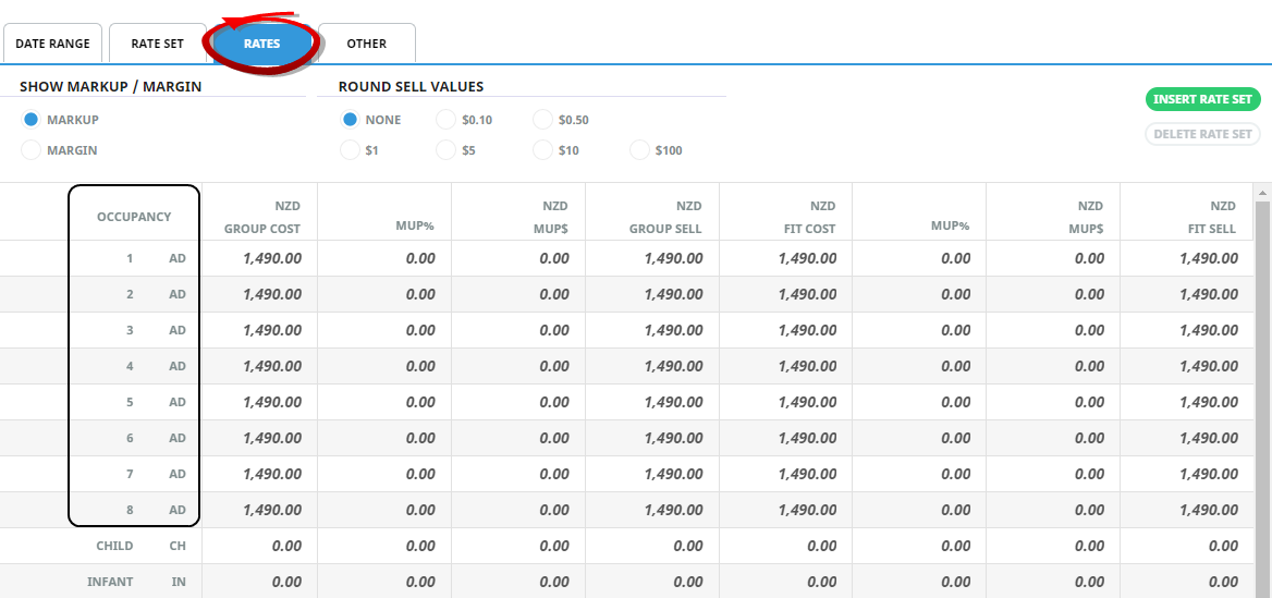 Rates Tab