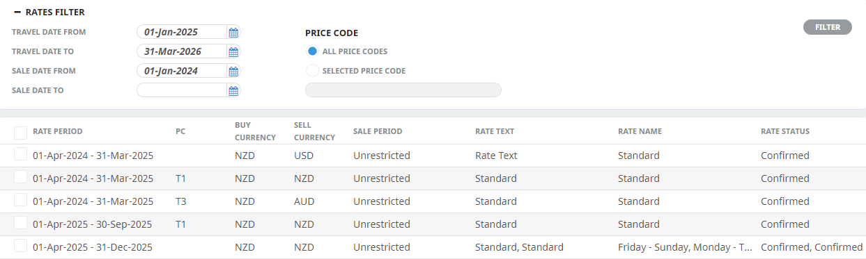 About the Rates Filter