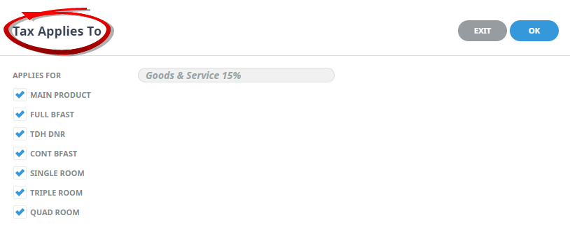 In general, taxes should only be applied here if there is a responsibility to account for the tax. This would normally be some type of Input/Output tax (VAT, GST etc.). If there is no accounting responsibility associated with the tax,(i.e. Sales Taxes, Bed Taxes etc.) then the cost/sell values entered in the Option Rates screen can include the tax.