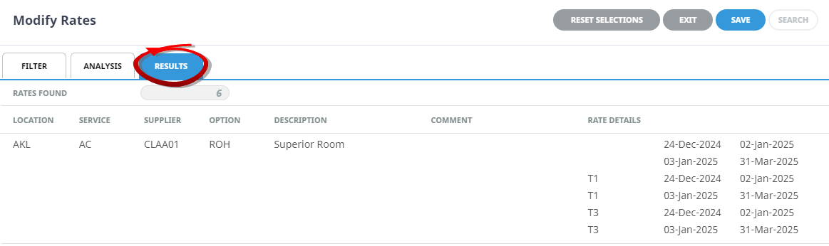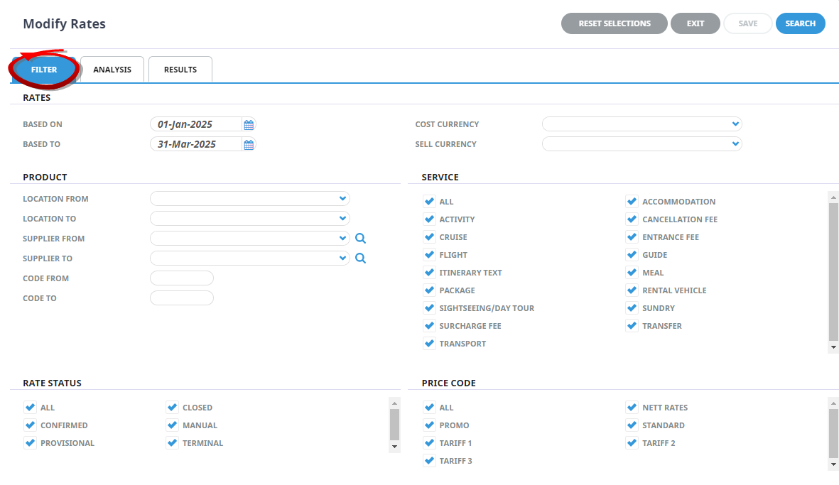 Filter Tab will open, enter a date range for Rates Based On and Based To, select required filter fields to narrow search results.