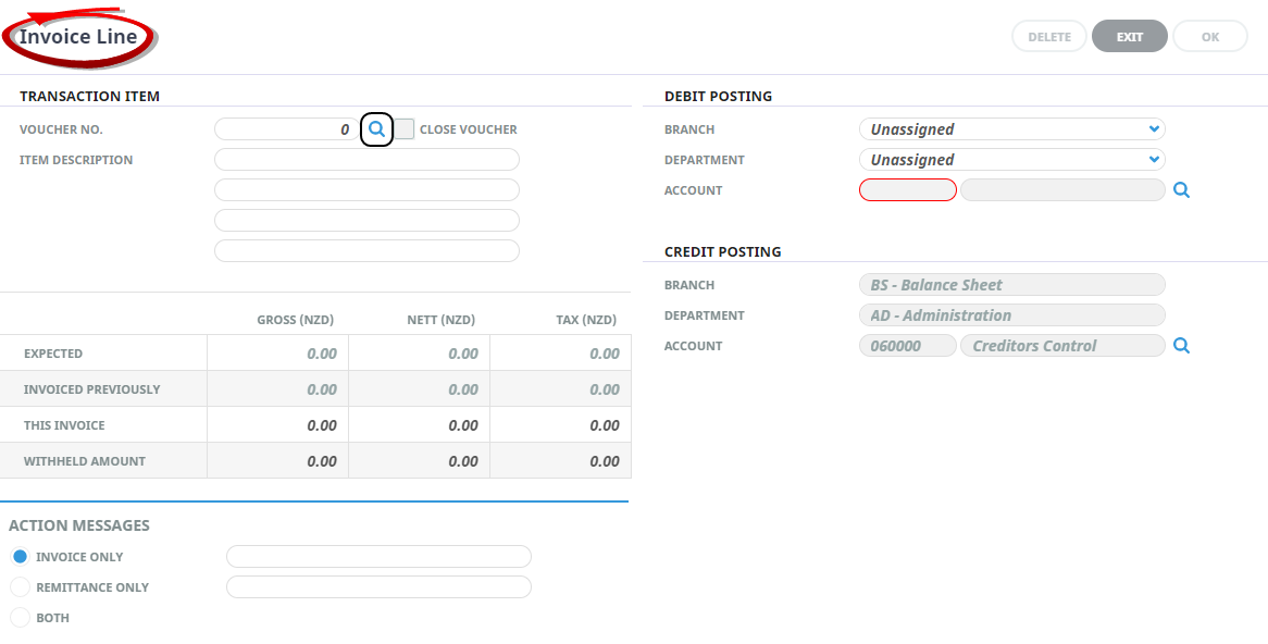 NOTE: The Delete button will become enabled when the invoice line is saved and is re-opened.
