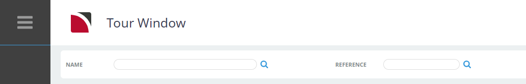 The Tour Window opens as a search screen and a booking must be retrieved before it can be viewed. Enter either a Booking Name or a Booking Reference and click the corresponding Search icon to retrieve a booking: