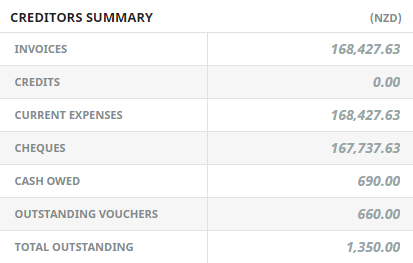 The sum of Current Expenses less Cheques - i.e., the value of creditor invoices processed that have not yet had cheques issued.