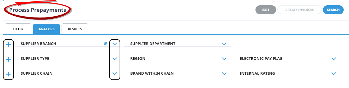 Select the Analysis Tab, and if required filter by the Supplier Branch, Supplier Department and the 6 Analysis Codes attached to the Supplier.