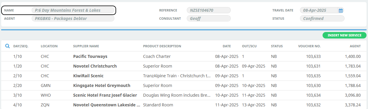 The name of the PCM that constitutes the package - e.g., 12 Day Best of NZ. A search of PCM's can be made using the