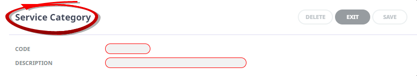Service Category (Analysis 1) screen, enter a Code for the analysis code and a Description.