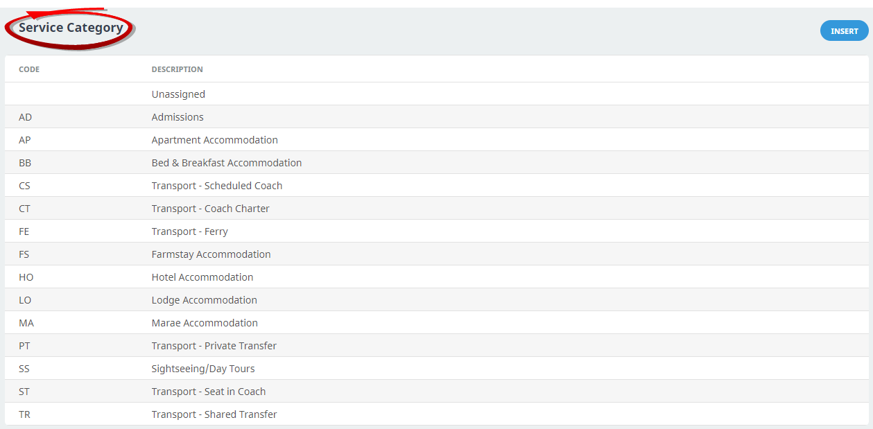 Service Category (Analysis 1) screen, if the code required is not already in the list, click Insert.
