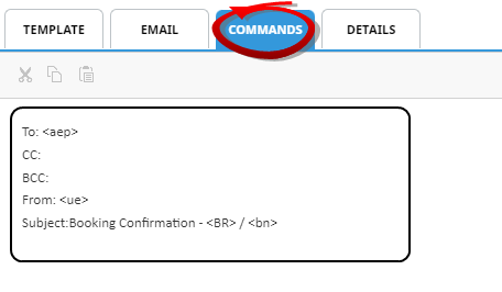 If email command tags (<EMAIL_CMD_START> and <EMAIL_CMD_END>) have been inserted into the Word document and uploaded, the details of the email commands will be available for viewing here. If the document is to be printed and no email commands are included in the saved Word document then this tab will be blank.