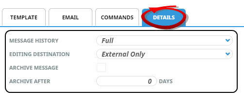 Message history is set per message template and history can be stored in several ways.