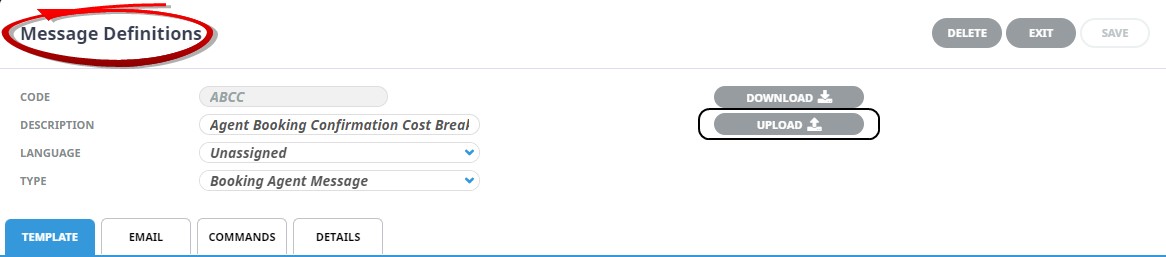 Message Definition screen, click Upload.
