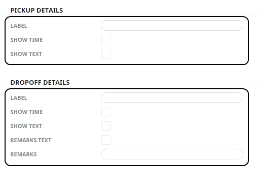 • Show Text - selecting this check box will display a text field for the drop-off/depart details to be entered into.
