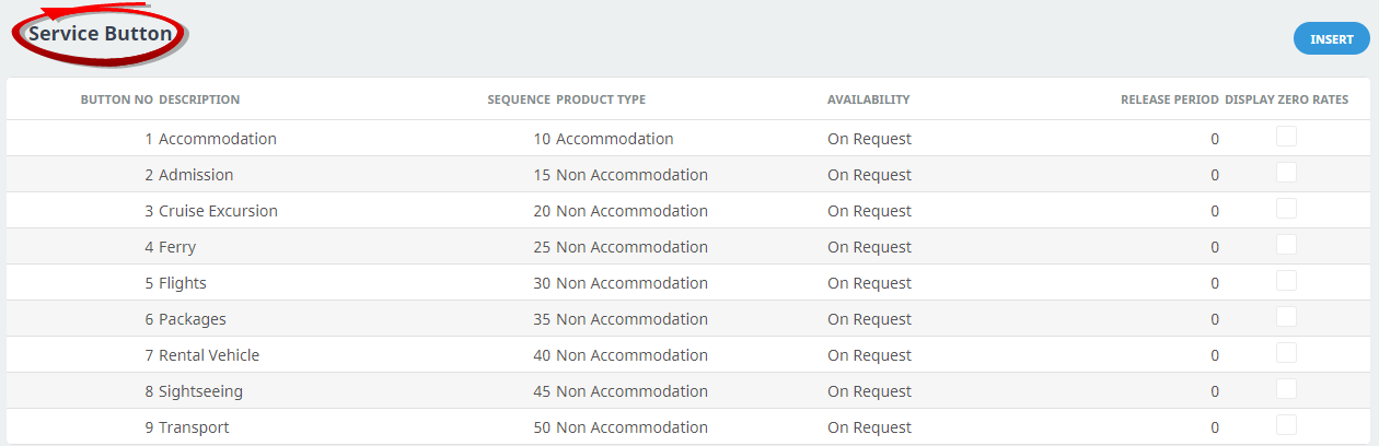 NOTE: It is not possible to have a mix of service types pointing to the same button. e.g., Accommodation and Non-accommodation.
