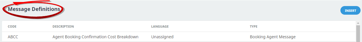 Message Definitions screen, select by clicking on the Message Definition to amend.