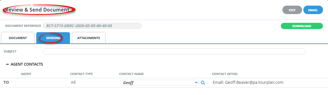 standard Review & Send Document screen will display allowing the receipts to be downloaded. Once a valid email address is selected, the document can be emailed.