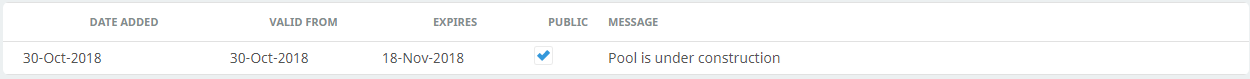 The example below shows the text Pool is under construction and will show when consultants book/quote rooms for this supplier between 30 October 2018 and 18 November 2018, the message will be available to agents online through webConnect.