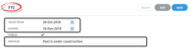 NOTE: When saved the message will display in a list of FYI messages and will remain on the Supplier FYI list even when expired, dates can be amended for the message to become extended or active again.