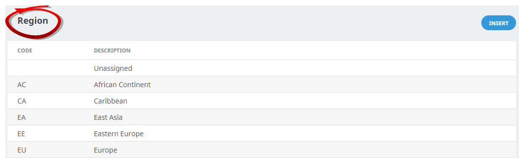Analysis 2 (Region) screen, if the code that you want is not already in the list, click Insert.