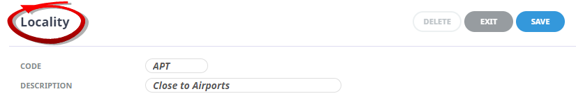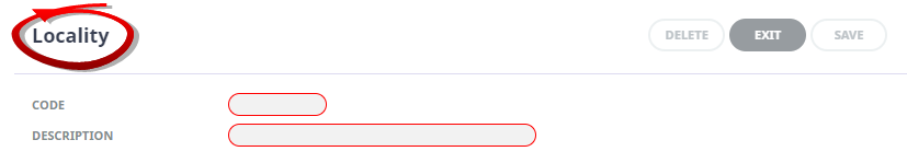 Locality screen, enter a Code and a Description.