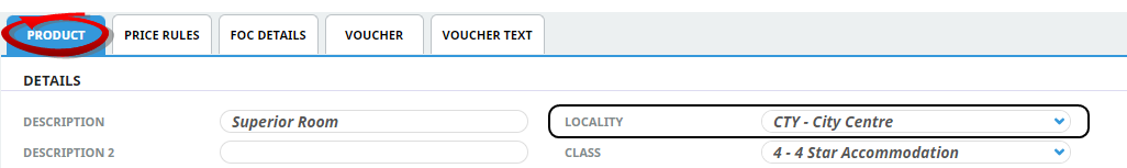 When the product is open, select product details from the product setup menu, open the product tab and select the required locality from the dropdown.